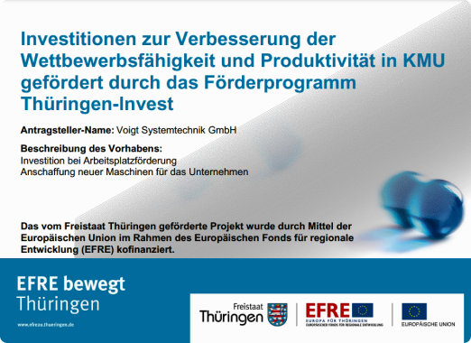 Investitionen zur Verbesserung der Wettbewerbsfähigkeit und Produktivität in KMU gefördert durch das Förderprogramm Thüringen-Invest.